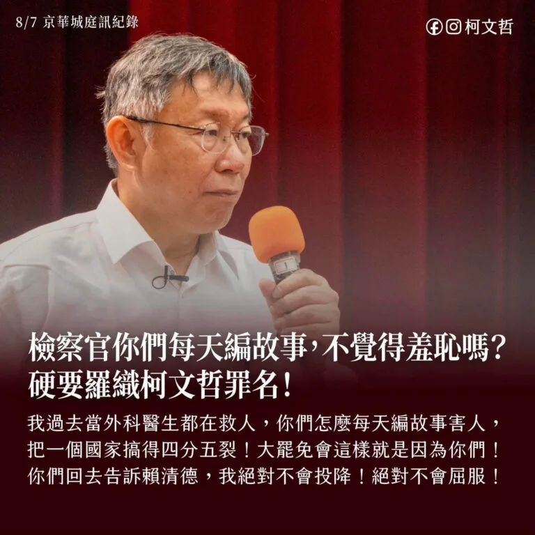 「台北市政府は公共の利益に基づき、一定の条件のもとで容積率を付与してきました。京華城はその第一例ではなく、第二例もすでに通過しています。都市の発展と再開発の加速のために容積を創設してきたからこそ、今の台北の進歩があるのです。それを検察は違法だと曲解しています。他の都市で認められていることが、なぜ台北ではダメなのか?それとも、問題なのは“柯文哲”だからなのでしょうか?」